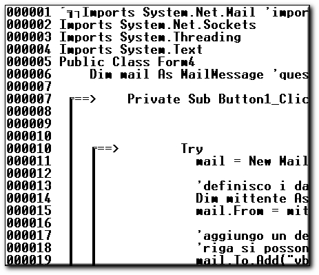 Programma in Vb.Net per l'Identazione del codice, per la verifica del codice dove si controlla se i tag di inizio e fine sono stati inseriti correttamente. Possibilita di Numerazione Pagina oppure solo testo identato senza caratteri grafici di Blocco |
